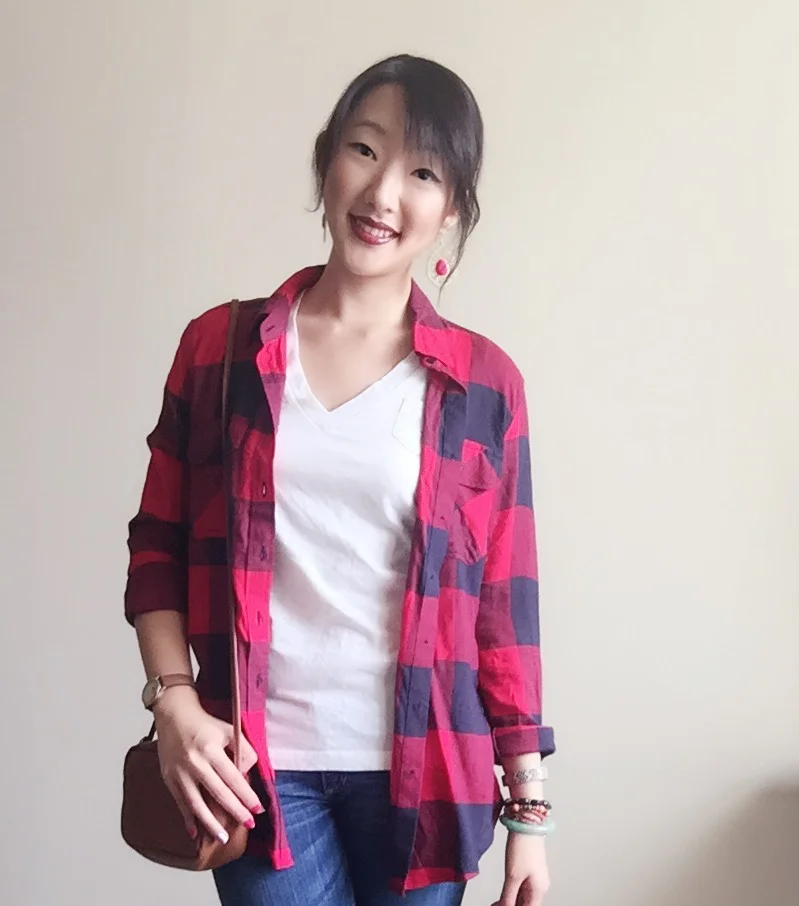 Tee: Target / Plaid Shirt: Francesca's / Jeans: Hollister / Earrings: Target / Shoes: Payless / Bracelets: Gift / Lipstick: Colour Pop